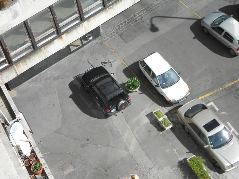 A ház lakói számtalan alkalommal kihívták a Józsefvárosi Közterület-felügyeletet, de rejtélyes módon a telefonhívás után a szakadt terepjáró mindig más parkolót választott!
