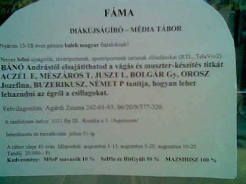 Tisztelt Kuruc.info! Ma délután vártam a villamosra a Margit híd budai hídfőjénél és ezt a hirdetést láttam felragasztva. A rossz minőség oka, hogy csak mobiltelefonnal tudtam lefényképezni. Azért a poén így is ül! Üdv: K. A.