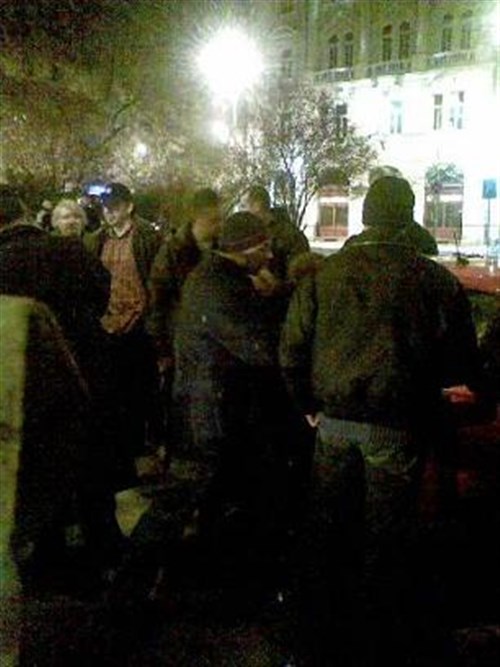 Egyszercsak megjelent a fent említett 2 piros verda, civilbe öltözött rendőrspiclikkel, a hídblokádról és más rendezvényekről ismert barmokkal..., az itt látható tetvek nagyrészével. : http://kuruc.info/r/37/17865/