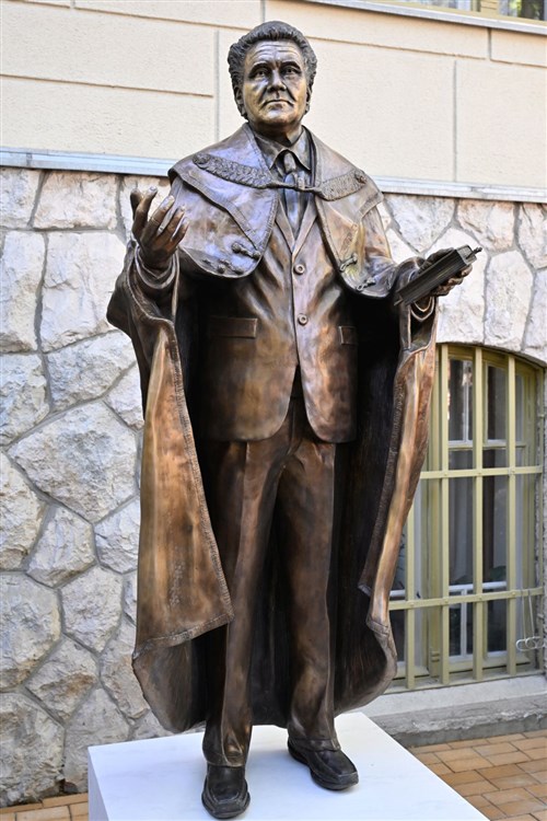 Hegedűs Loránt író, a Dunamelléki Református Egyházkerület egykori püspökének szobra a református zsinati székház kertjében (kép: MTI/Máthé Zoltán)