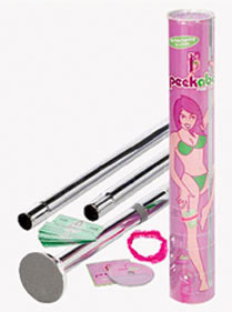 The £49.97 kit comprises a chrome pole extendible to 8ft 6ins, a 'sexy dance garter' and a DVD demonstrating suggestive dance moves.