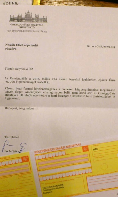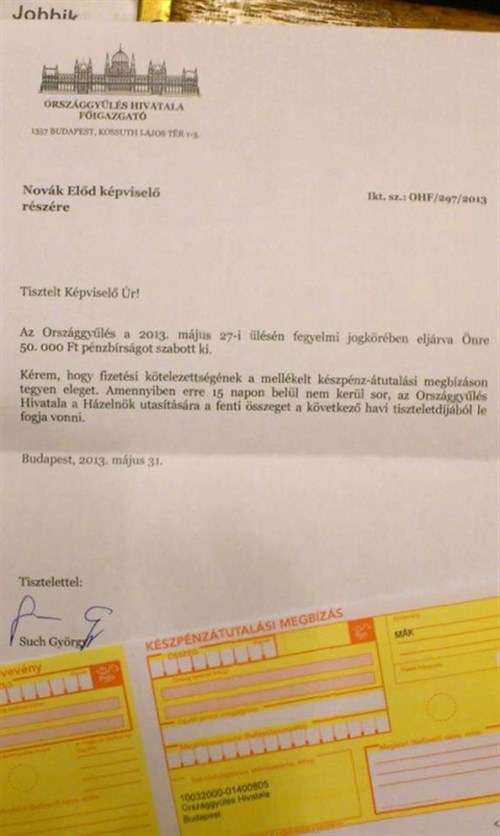 Másik pikáns szabálytalanság, hogy Kövér László balliberális barátja, Such György megelőlegezte az Országgyűlés döntését, amikor azzal fenyeget, hogy a múltkori bírság be nem fizetése esetén levonják a tiszteletdíjamból. Ugyanis az Országgyűlésben épp ma éjszaka lesz napirenden ez a javaslat, hogy a jövőben így be tudják hajtani a bírságot a jelenlegi önkéntes befizetés helyett. De minek vitázunk róla, ha már elfogadottnak tekintik a javaslatot?
