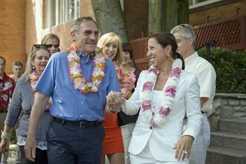 Rövid beszédet mondott a magyar külügyminiszter is, aki a fogadás hawaii tematikájához nem öltözködésben - a vendégek java része hawaii ingben volt, de Martonyi és Pintér konzervatívabb viseletben jelent meg - kapcsolódva, olyan magyarokról beszélt, akiknek valami köze volt Hawaiihoz. Beszélt a közös értékekről, és ő is elbúcsúzott a nagykövettől, megjegyezve, hogy a magyarok mindenütt ott vannak a világban, és őt is követni fogják. Kapott is érte egy puszit.
