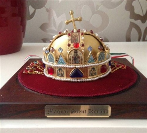 Elkészítette a Szent Korona kicsinyített mását egy magyarországi cég. A mintegy 10 cm átmérőjű Szent Korona-replika, egy üvegharanggal leborítva, egy tetszetős dobozban helyezkedik el. Bemutatása augusztus 18-án, a Magyarok Világszövetsége alapításának 75. évfordulóján, a Magyarok Világszövetsége székházában megtartandó ünnepi nemzetpolitikai konferencia során lesz.