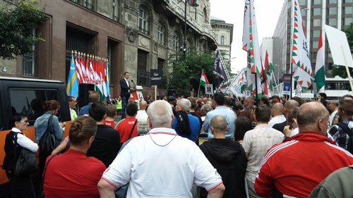 A beszédeket néhány százan hallgatták, közülük többen jobbikos zászlókkal és transzparensekkel érkeztek. Utóbbiakon egyebek mellett az volt olvasható, hogy "Bevándorlók: jobb belőlük adni, mint kapni", vagy "Minek a kerítés, ha nyitott kapuk vannak rajta". A rendezvényen részt vett a francia Nemzeti Front néhány képviselője is, őket többször köszöntötték.