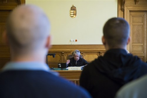 A vádlott a kép jobboldalán, szemben Kalina József bíró látható. B. Tamás csak akkor mutatott érzelmeket, amikor anyja került szóba