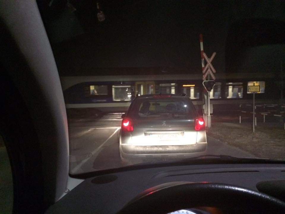 A Bagoly utcai sorompónál a jelzőlámpa 10 percig pirosan villogott. Ez idő alatt két vonat ment el, majd a lámpa fehérre váltott, a sorompó pedig nyitott állásban volt, amint az a képen is látszik. Az autósok elindultak szemből, őrült dudálás, mindenkinek sikerült megállni szerencsére, de a vonat nem tudott volna, ha akar sem megállni, fékezéssel gurult el előttünk, nem lassú tempóban - számol be a minapi esetről.