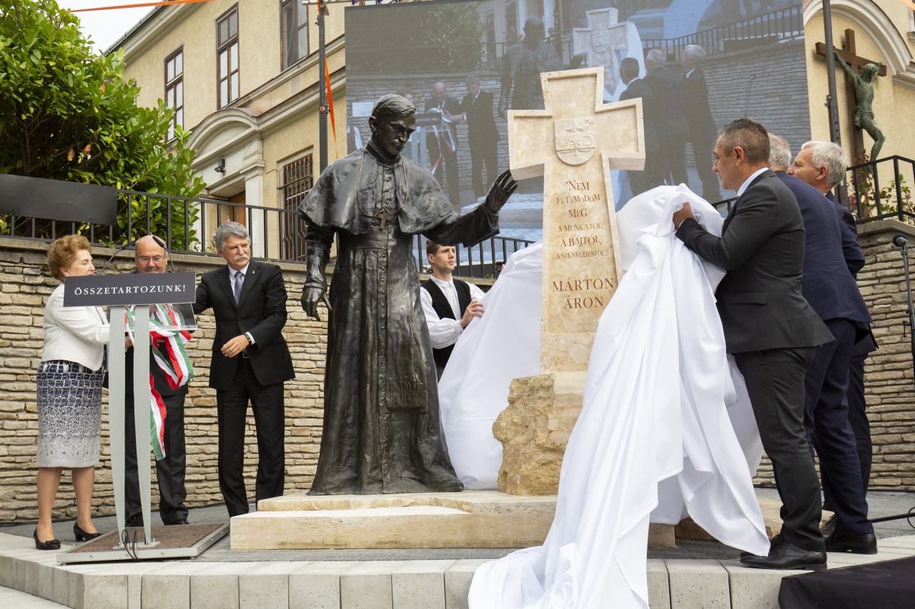 Kövér László, az Országgyűlés elnöke a város Kossuth terén, Párkányi Raab Péter szobrászművész alkotásánál hangsúlyozta: Márton Áron ember- és nemzettársainak, híveinek reménységet nyújtott a reménytelenségben, emberséget az embertelenségben, hitet a hitetlenségben, magyarságot a magyarellenességben, székely öntudatot az árvaságban, és tetteivel visszaadta a szavak magyar értelmét, erkölcsi súlyát, valamint emberi hitelét.