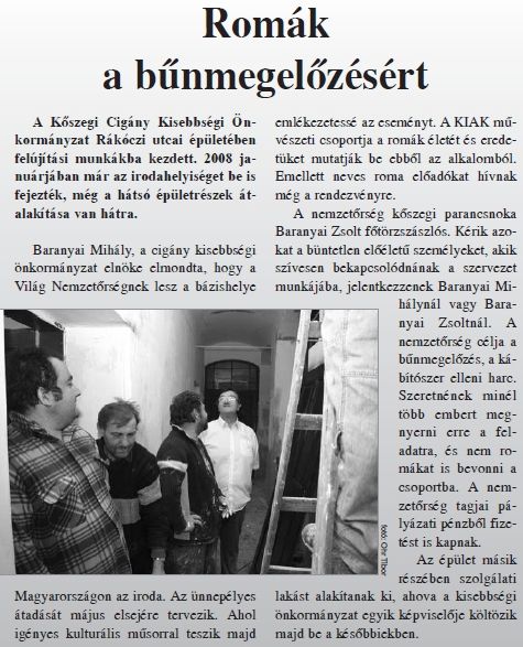 "Itt szeretné gyorsan megkérdezni a C-PRESS Hírügynökség, hogy kitől kapnak segítséget, pénzügyi támogatást? (...) A továbbiakban már csak költői kérdéseket tudunk feltenni, melyre persze mindenki tudja a választ és nem nehéz a találós kérdés megfejtése. Kiknek áll ma Magyarországon érdekében az, hogy a Gárda klónját cigányul is megfogalmazzák, illetve életre hívják? Talán ugyanazok az erők támogatják a kőszegi főtörzszászlósékat, akik a Magyar Gárdát? A magyar társadalom egyik része túlbuzgóan cigányellenes, veszélyt lát a cigányokban, sőt némelyik elvetemült szélsőséges politikai képződmény tagja egyenesen genetikai hulladéknak nevezi a cigányokat. Parancsnokságot és rangokat hoznak létre, mint a fegyveres erők tagjainál."