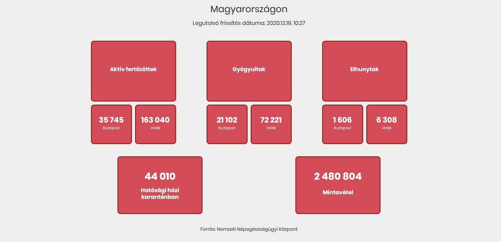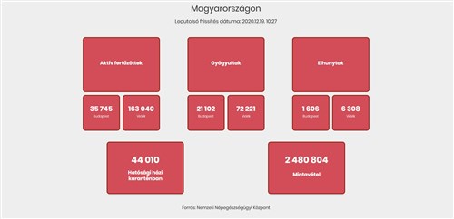 Az aktív fertőzöttek száma 198 785. Az aktív fertőzöttek 18 százaléka, az elhunytak 20 százaléka, a gyógyultak 23 százaléka budapesti.