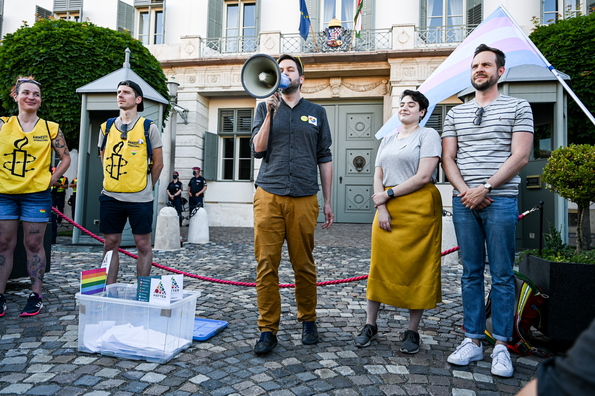 Ezrek jelezték előzetesen, hogy elmennek tiltakozni, végül kb. 500 ember sétált fel a Várba. Csendes, beszédek nélküli demonstráció volt, aminek szívét-lelkét egy műanyag láda adta. Ebbe hozhatták el legépelt vagy kézzel írt, másságuk felvállalásának történetét taglaló leveleiket a résztvevők, írja a 24.