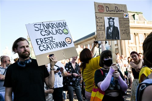Mivel a parlament hétfőn elfogadta a jogszabályt, azt már csak Áder János államfőnek kell aláírnia, ezért is a Sándor-palota volt a tiltakozók célpontja.