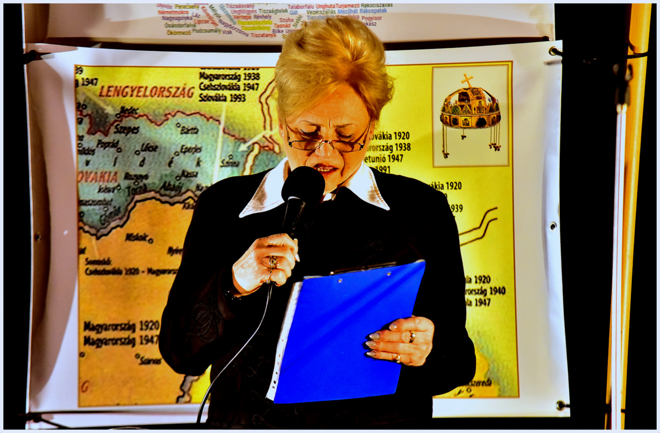 A rendezvény fő szónoka dr. Drábik János, a Trianon Társaság elnöke volt, aki ismertette a mai Ukrajna kialakulásának történelmi előzményeit, és drámaian éles szavakkal bírálta az immár egy éve folyó, és rengeteg emberáldozattal járó háború mögött rejlő nagyhatalmi játszma felbujtóit, szereplőit és gátlástalan haszonélvezőit.