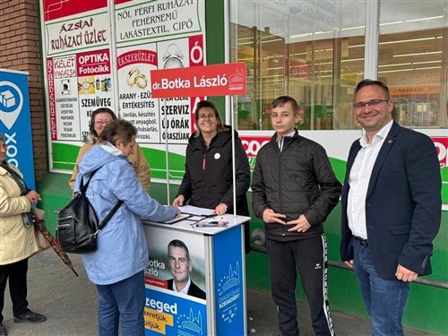 Idén viszont már erre sem támaszkodhatnak, mivel a DK-nak is gyűjtenie kell az ajánlásokat. A szegedi elnök felesége is, Komjátiné Nagy Jusztina – akit férje helyett "civilként" indítanak a választáson – inkább a DK-s Fodor Antallal gyűjti az aláírásokat.