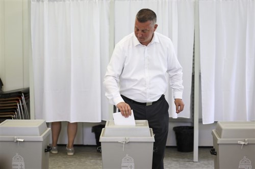Grundtner András leadja szavazatát a XII. kerületi Fekete István Általános Iskola és Előkészítő Szakiskolában (fotó: Hegedűs Róbert/MTI)