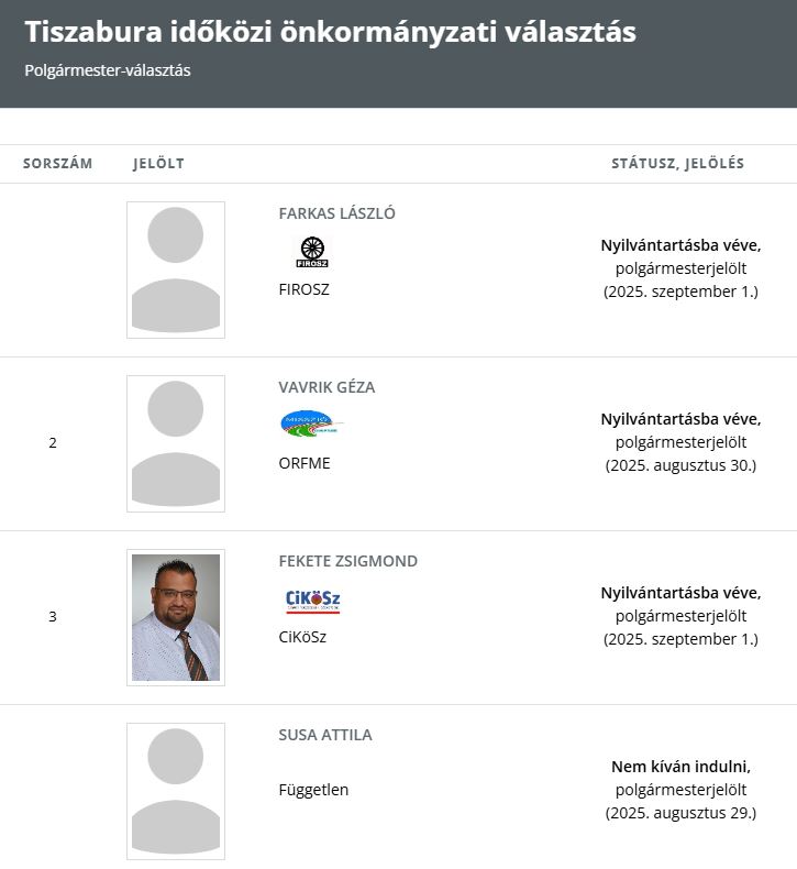 A helyzetet tovább bonyolítja, hogy a 2019-2024 közötti időszakban Vavrik Géza még firoszos volt, aztán átejtőernyőzött a Ciköszbe, akikkel tavaly győzelmet aratott. A mostani időközin azonban már egy másik cigány szervezet, az Országos Roma Felemelkedésért Misszió Egyesület (ORFME) színeiben indul. Ők megméretették magukat tavaly is Tiszaburán, sikertelenül.