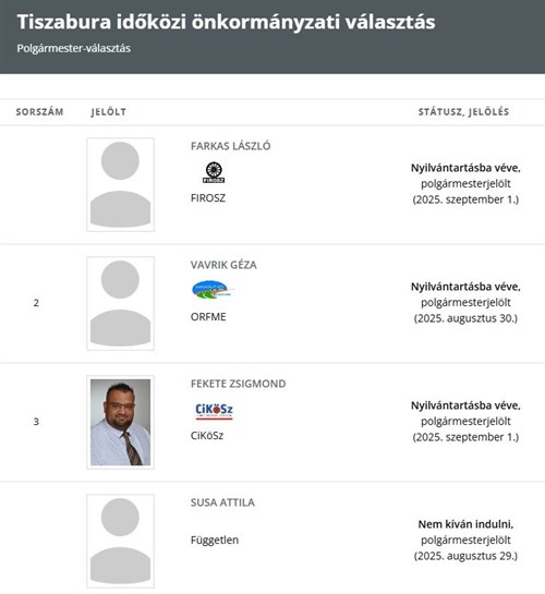 Időközi polgármesterjelöltek Tiszaburán (fotó: valasztas.hu)
