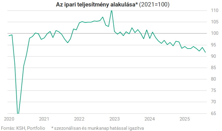 Az év első nyolc hónapjában 3,9 százalékkal kisebb volt az ipari termelés, mint 2024 azonos időszakában.