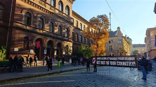Tanúk, trombitálás, skandálás – ismét hangosan vette kezdetét a 2023-as antifa támadások tárgyalása a Fővárosi Törvényszéken. A teremben Simeon Ravi Trux (az Index szerint Maja, csak mert ő nőnek képzeli magát) ismét a bv. kommandósai gyűrűjében érkezett, a padsorok megteltek a német vádlott szeretteivel és érdeklődőkkel, eközben az utcán többször is kiabálva követeltek büntetlenséget az elkövetőknek.