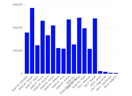 Július végén indult el a Facebookon és a YouTube-on a fideszes kommunikációs csodafegyverként beharangozott napi beszélgetős műsor, a Harcosok órája. A műsorvezető, a köztévés híradósból lett Fidesz-frakciószóvivő Németh Balázs már az első héten milliós nézettséggel büszkélkedett, de igazából már akkor látni lehetett, hogy a valós érdeklődés ennek csak a töredéke, és hirdetésekkel tornásszák fel a nézettségi adatokat. A show rendületlenül ment tovább, látszólag óriási nézettséggel. Eközben szépen gyarapodott a hirdetési számla is, szeptemberben már 4,7 millió forintba került a Harcosok órájának vásárolt nézettség. Ami persze csepp a tengerben a milliárd feletti, teljes kormányközeli facebookos reklámköltést nézve, de sokatmondó, hogy így is bő félmillióval több, mint amit ezalatt az ellenzék vezető ereje, a Tisza költött, írja a Telex.