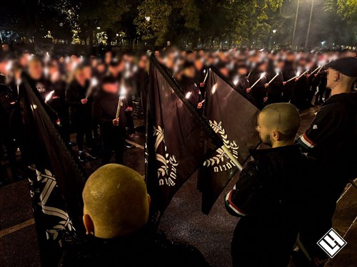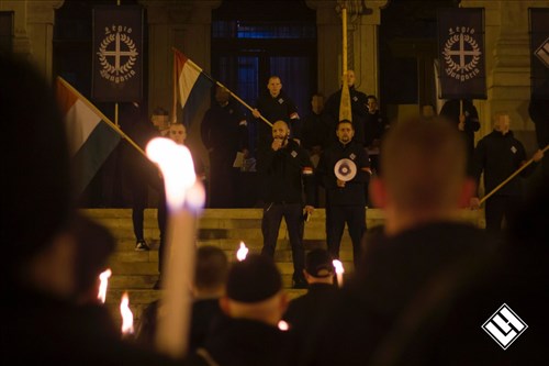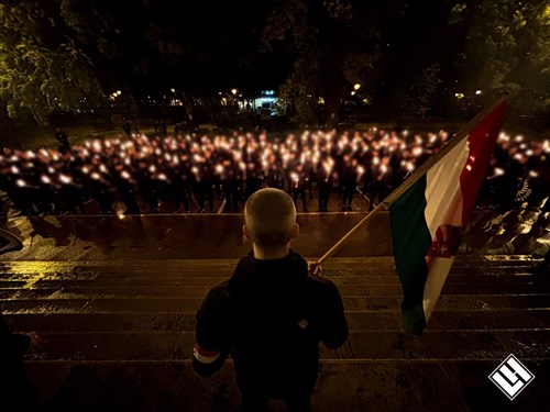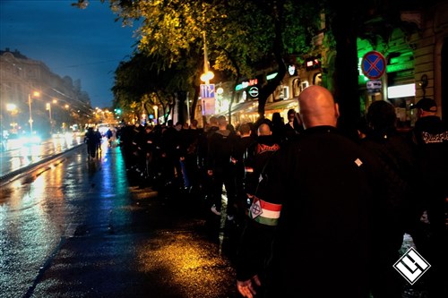 A Jászai Mari térre meghirdetett gyülekezőről rendezett sorokban, méltóságteljesen indult el a körülbelül 250 fős menet a körút jobb oldalán a Nyugati pályaudvar felé. A járókelők nem is feltétlenül tudták mire vélni a látványt: a feketébe öltözött fiatal nacionalisták menetének elején fekete zászlók követték a legelöl haladó lángot, mely, bár távolról aprónak tűnt, tüze mégsem alszik ki évtizedek óta.