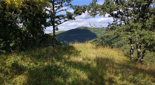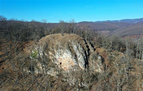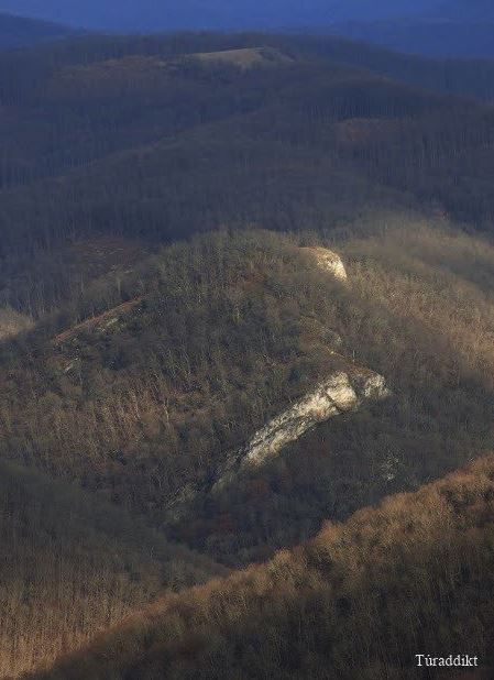 Füzér-kőre és a vár egykori helyére nyíló kilátás egy másik erősségtől, Ódorvártól