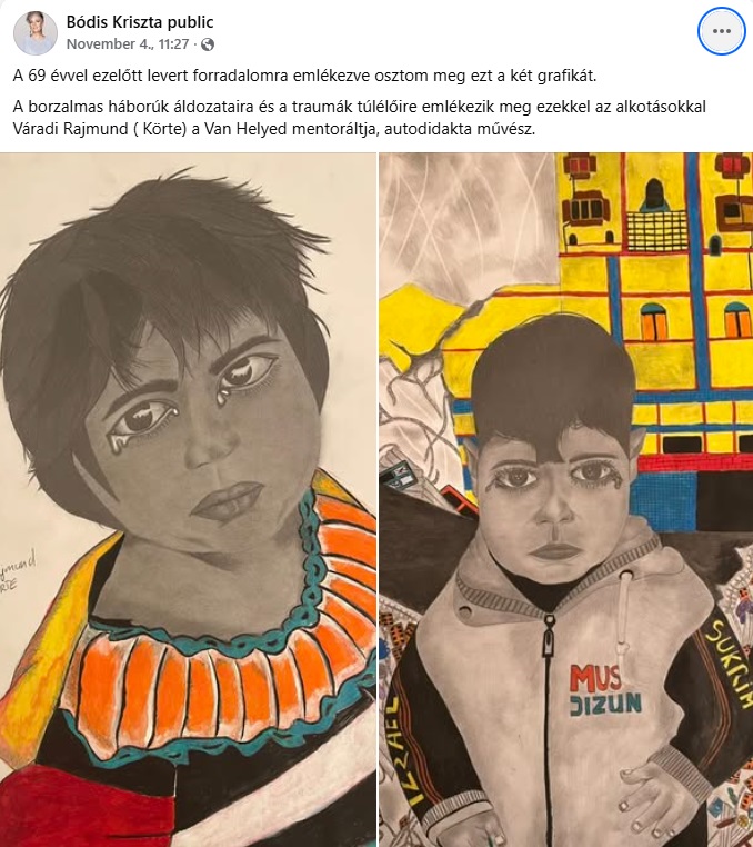 Bódis, mint egy jövőbeni miniszter, természetesen nem feledkezik el a magyar történelem dicső vagy éppen szomorú napjairól sem, így november 4-ről is megemlékezett. Mivel is lehetne méltóbban emlékezni az antibolsevista felkelés leverésére, mint egy cigány, Váradi Rajmund (Körte) által készített grafikákkal, ami síró cigány fiatalokat ábrázol?
