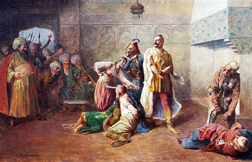 Schramm Viktor: Thököly Imre elfogatása a nagyváradi pasa által (Schramm Viktor festménye, 1896)