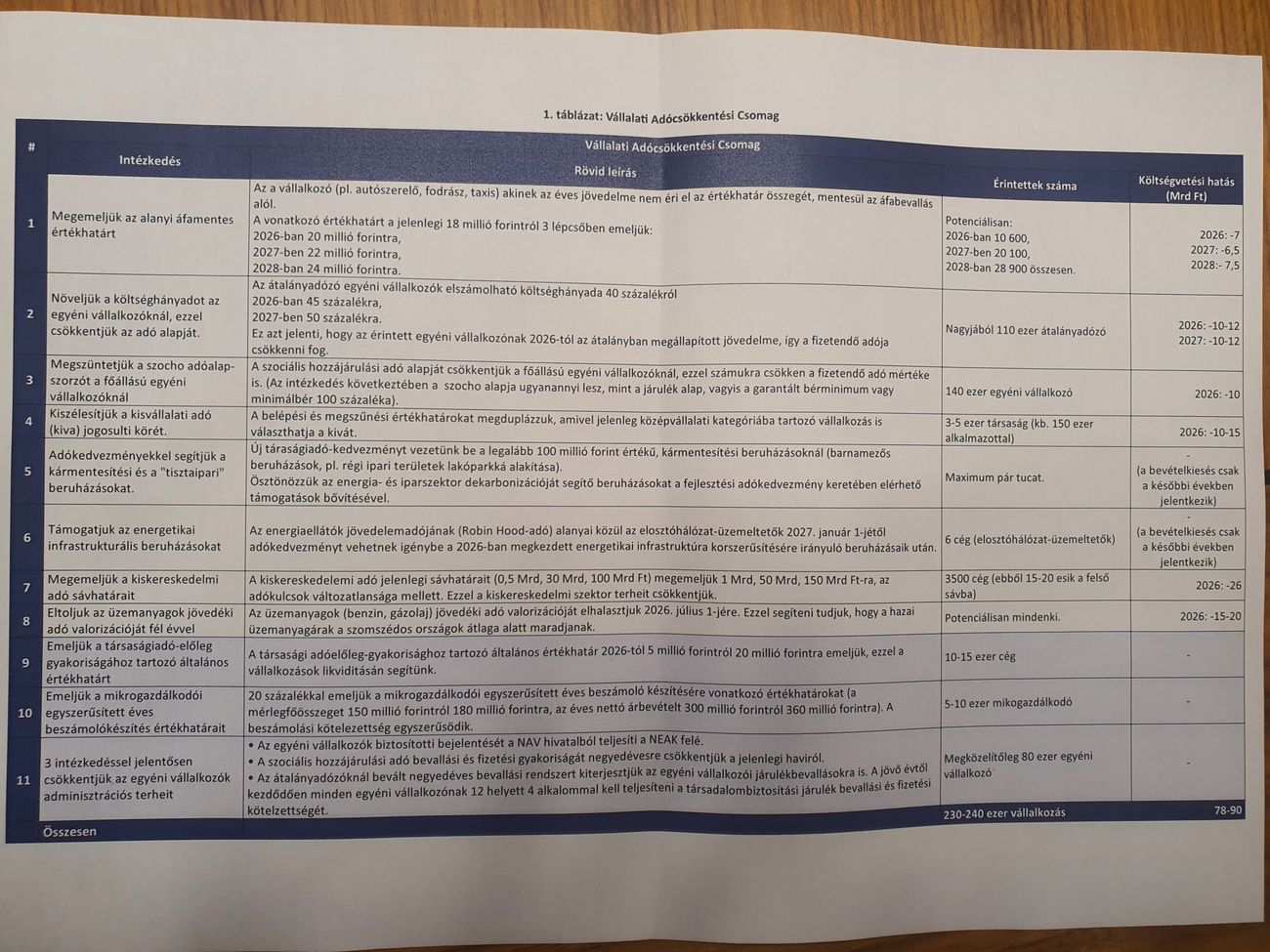 - Az átalányadózókra is új szabályok lesznek. 2027-ben 50 százalékra emelik a költséghányadot, 2028-ról még egyeztetnek.