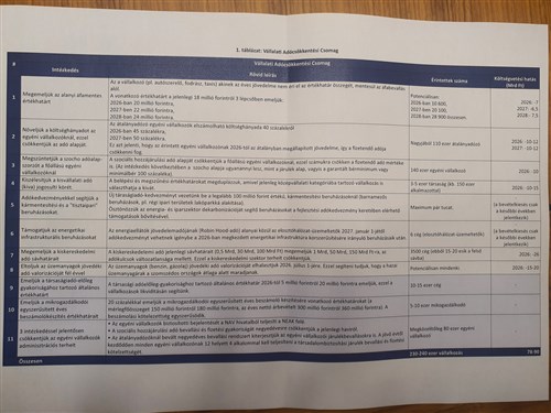 - Adókedvezmény energiaellátóknak az infrastruktúra fejlesztésére.