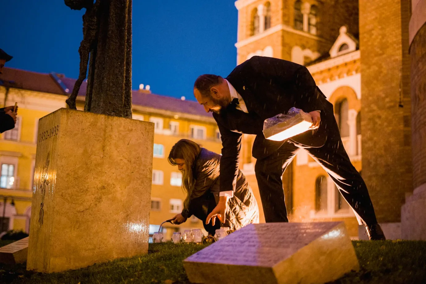 „Ez egy kettős megemlékezés, mert nemcsak az ukránok elleni népirtásról, hanem a magyarokat érintő malenkij robotról is megemlékezünk” – kezdte beszédét Sándor Fegyir, hozzátéve, mindkettő több millió emberáldozatot követelt. „A vadállat neve Moszkva. És a vadállat még él” – jelentette ki a nagykövet. „És csak az emlékezetünk tudja legyőzni” – fogalmazott.