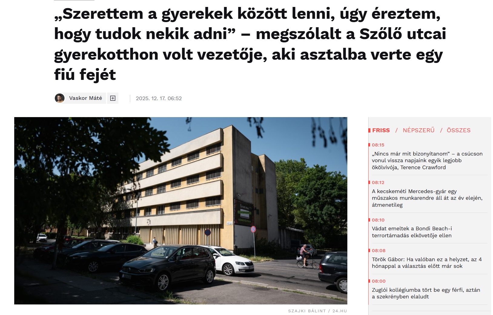 És így hazudik a 24.hu és újságírójuk, Vaskor Máté: a Szőlő utcai intézmény nem gyerekotthon, hanem javítóintézet, ahová bírósági ítélet vagy előzetes letartóztatás alapján kerülnek be bűnelkövetők... De a libsiket az efféle apróságok nem szokták zavarni, ha a saját politikai érdekeikről van szó (ugyanakkor a munkatábor-haláltábor megnevezés esetén például már sokkal érzékenyebbek, nem is értjük, miért...)
