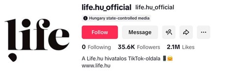 „Magyar állami ellenőrzésű média” – ez a felirat jelent meg több, a Fideszhez közel álló szervezet és médium TikTok-profiljának tetején.