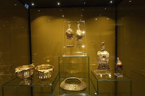 Késő antik ékszerek és edények az Attila-kiállításon a Magyar Nemzeti Múzeumban