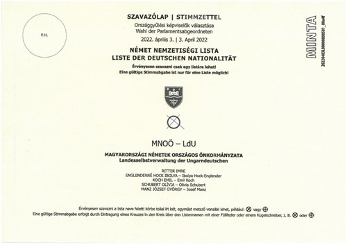 A német nemzetiségi mandátumot Ritter Imre volt fideszes politikus nyerte el az elmúlt két alkalommal, aki végig a kormánypártokkal egyezően voksolt a parlamenti szavazásokon. Az idén Gallai Gergely nemzetiségpolitikai szakértő lesz a listavezető.