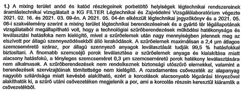 A munkavédelmi hatóság ebben, a harmadik jelentésében hívta fel rá a figyelmet, hogy a KG Filter Kft. majdnem két évvel korábbi, 2021-es szakvéleményében már jelezte a problémákat, de azokat nem javították ki. Ahogy írják: a „légszennyezettség mérések eredménye és az újabb és újabb fokozott expozíciós esetek is alátámasztják, hogy a légtechnikai rendszer hatékonysága nem megfelelő”:
