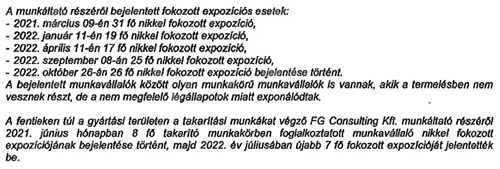 A munkavédelmi hatóság ebben a határozatában már felsorolja, milyen nikkelszennyezésekről kaptak jelzést.