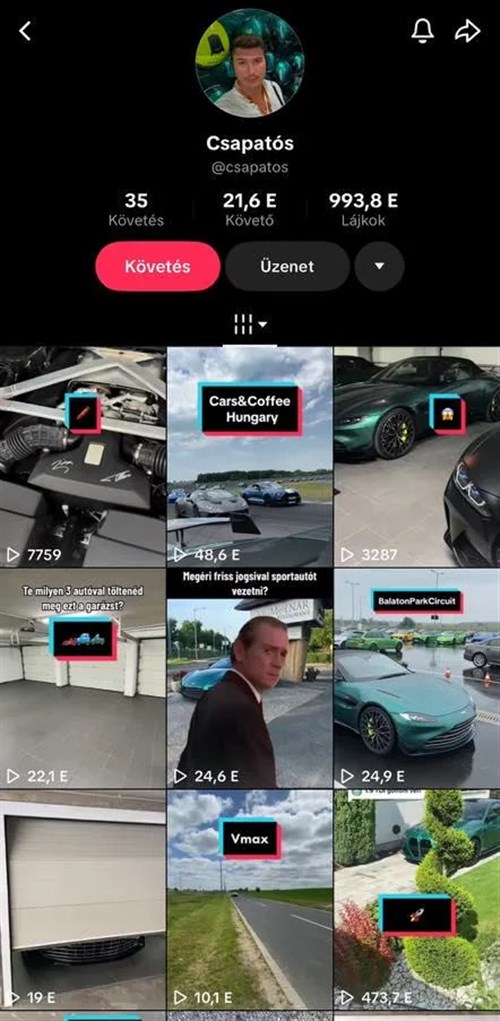 Ez volt a TikTok-oldala, amit azóta törölt: https://www.tiktok.com/@csapatos. Biztos nem azért törölte, hogy megnehezítse a nyomozást és a bizonyítást, egyszerűen csak épp ráunt a TikTokra, ezért felesleges is az előzetes letartóztatást indítványozni az ügyészségnek...