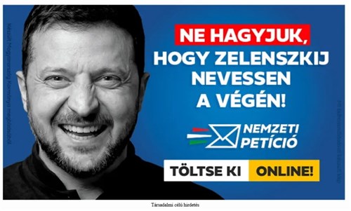 Régi-új fordulattal kezdte hirdetni a kormány a januárban elindított "nemzeti" petíciót. Az utcákat elárasztó plakátokon és online hirdetéseken eddig az Ursula von der Leyen – Volodimir Zelenszkij – Manfred Weber hármas szerepelt, a most online térben megjelent "társadalmi célú hirdetéseken" azonban már csak Zelenszkij vicsorgó arca látható, méghozzá "Ne hagyjuk, hogy Zelenszkij nevessen a végén" felirattal. A hirdetés a kormány megbízásából készült.