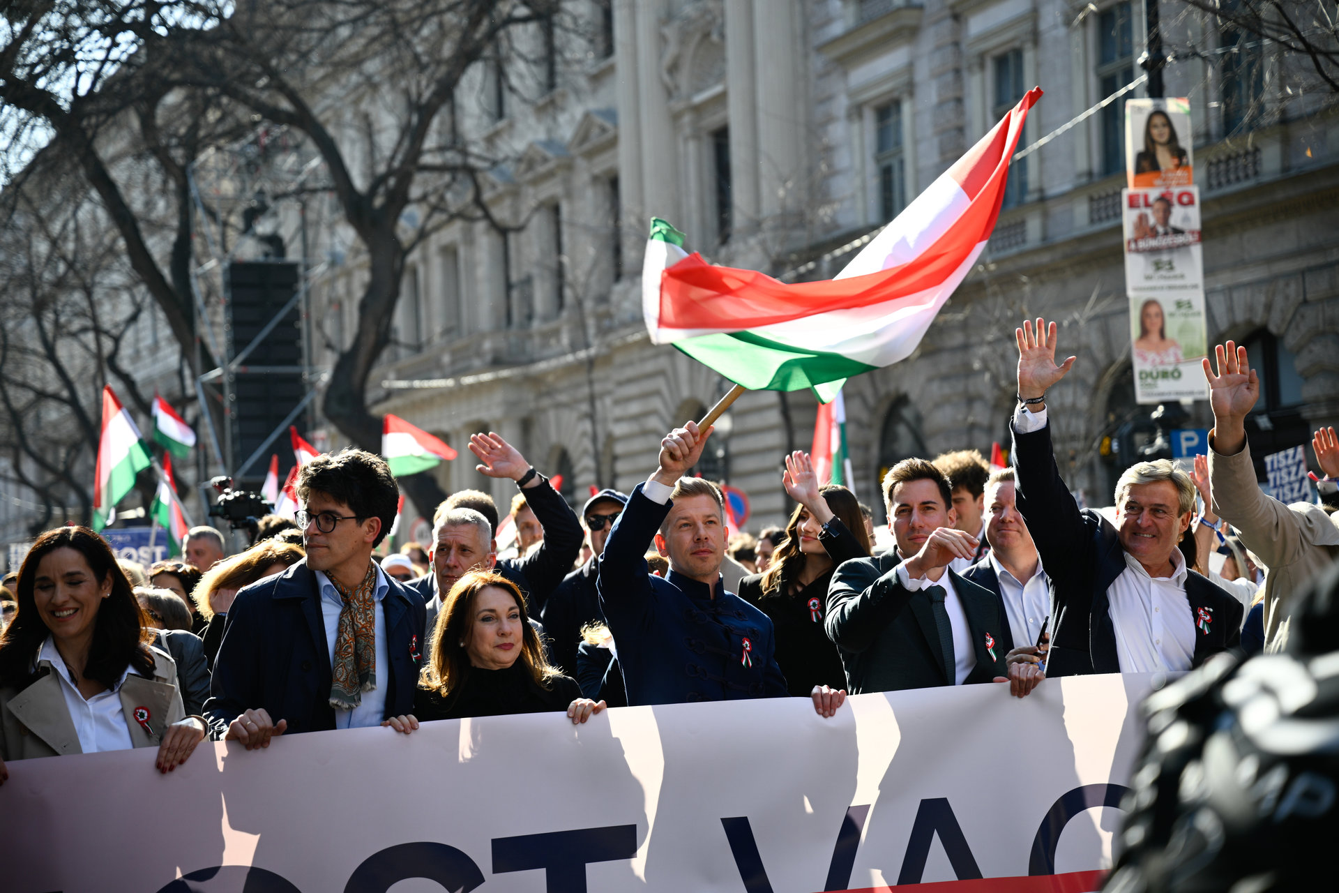 1848 minden magyaré volt, mert a szabadság minden magyar joga – erről beszélt Magyar Péter március 15-i beszédében a Hősök terén. A Tisza Párt elnöke azzal folytatta, hogy az őseink döntése egyértelmű és szilárd volt, de a szabadságért újra és újra meg kellett és meg kell ma is küzdenünk. – Ezért mondjuk el újra, hogy a múltban ragadt rettegő császár és a környezetében megbúvó janicsárjai is hallják: hazánk a Nyugat, az európai közösség, a NATO része – szögezte le. Szavai szerint az őseink hagyták örökül, hova tartozunk: mi magyarok vagyunk Európában, magyarként elutasítjuk a háborút és az erőszakot, nem félünk. – Megtanultuk az őseinktől, hogy semmi sem tart örökké, mi magyarok nem félünk – emelte ki. A politikus kifejtette, hogy 1848 magyarjai azért küzdöttek, mert szabadok akartak lenni. – A magyarok szabadok akartak lenni, szabadon akartak élni – hangsúlyozta, kifejtve, hogy maguk dönthessenek a sorsukról és ne a császár tegye. Alattvalók vagy magyar polgárok, ez volt a kérdés akkor és szerinte ez a kérdés ma is.