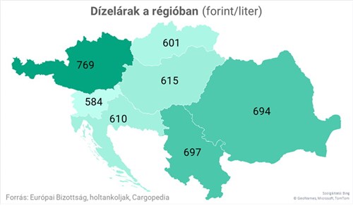 Az alábbi grafikákon térképen is látható, hogy hol drágább a benzin és a dízel a régióban, mint Magyarországon.