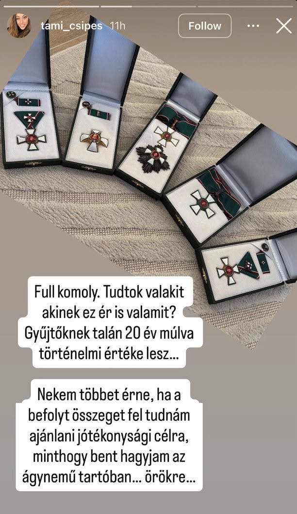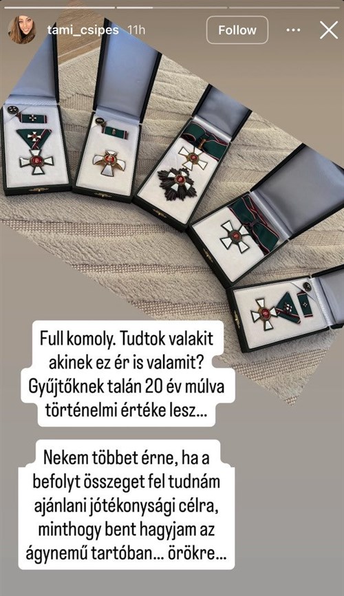 Hozzátette, ugyanitt eladó a saját Magyar Érdemrend lovag-, tiszti- és középkeresztje. Egy újabb bejegyzésben pedig ráerősített, hogy komolyan gondolja, a befolyt összeget jótékony célra fordítaná.
