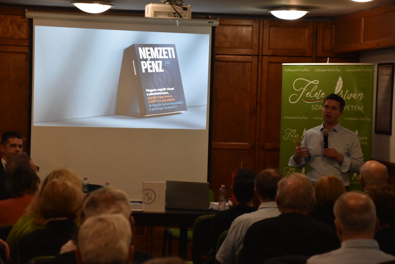 A pénz fontos dolog, nem tehetjük meg, hogy ne foglalkozzunk vele. Fontos, hogy ki teremti elő, ki uralja. Ezért dolgozunk, a boltban ezzel fizetünk, akár a megtakarításainkat is elbukhatjuk, ha átvernek vagy rosszul döntünk. Államszervezési, uralmi szempontból is fontos – szögezi le Szabó Gergely.