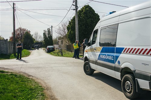 A rendőrök több autóval és kisbusszal vonultak föl.