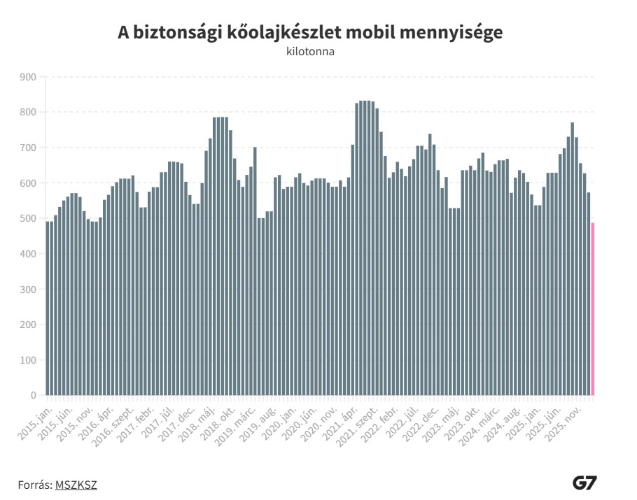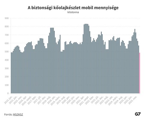 A kőolajtartalék már február végén is kifejezetten alacsony volt: 2015 óta soha nem közölt ennyire alacsony készletszintet az MSZKSZ. Most az egy hónappal ezelőtti adatot kissé felfelé módosították, március végére azonban épp akkora mennyiséget közöltek, mint amennyit eredetileg februárra is.