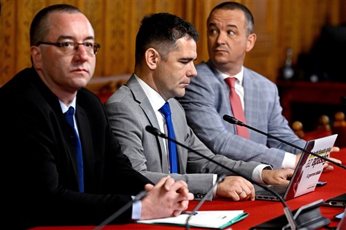 Sipos Richárd, Novák Előd és Apáti István, a Mi Hazánk Mozgalom delegációjának tagjai