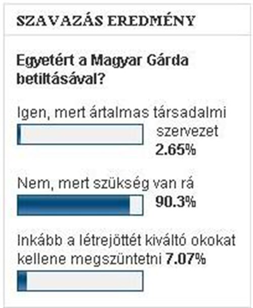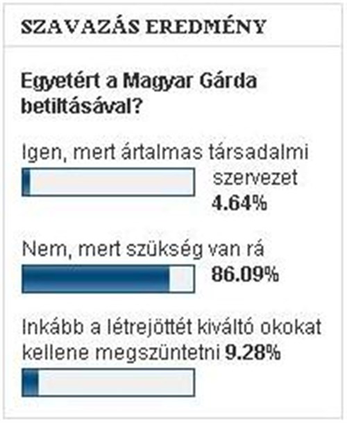 Július 12-én (azaz ma) 18.18-kor írtuk: A Békés Megyei Hírlap olvasóinak 15%-a ért egyet a Gárda betiltásával