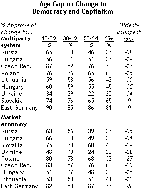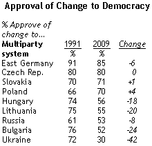 A legtöbb volt szocialista országban még (vagy inkább: újra - a szerk.) nagy a varázsa az erős politikai vezetésnek, csak a csehek, lengyelek és a volt kelet-németek hisznek többségileg abban, hogy a demokratikus intézmények, mint a parlament a legjobb módja az ország gondjai megoldásának.