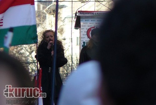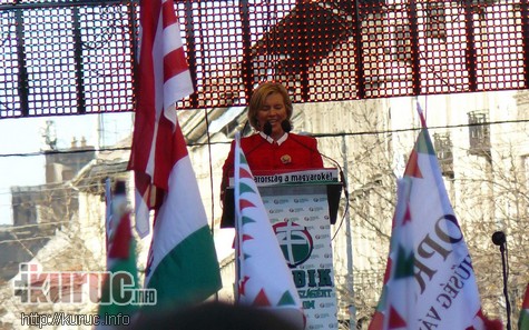 15:40: Morvai Krisztina, a Jobbik európai parlamenti képviselője beszédében bírált több nemzetközi szervezetet, így az Európai Uniót, a "gyalázatos lisszaboni szerződést" és a Nemzetközi Valutaalapot. A 12 pont sorrendjét követve beszélt arról is: rendes hadserege ma sincs az országnak, de a Magyar Gárda bizonyította, hogy kész a haza védelmére. Azt tervezik, hogy a felállítanák a magyar nemzeti gárdát mintegy tartalékos haderőként: "háborúban katonák, békében civilek lennének és a katasztrófavédelemben segítenének".