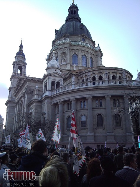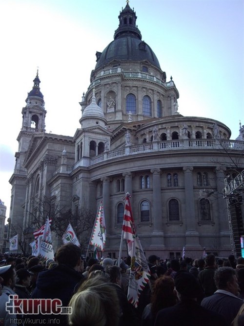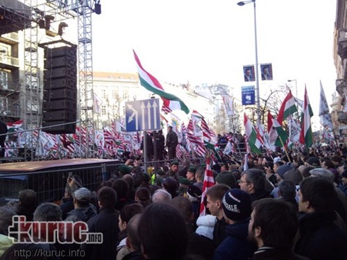 17:16: Vona után Kiss Róbert Gárda-kapitány tartott beszédet, majd a Szózattal és a Székely himnusszal véget ért a Jobbik ünnepsége, szállingóznak haza az emberek.